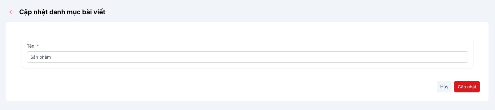 Bước 3: Chỉnh sửa tên Chuyên mục sau đó bấm "Cập nhật"